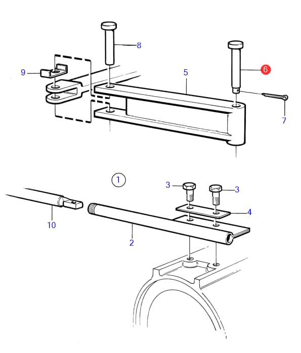 Denna clevis-pin används för att låsa samman komponenter i styr- eller mekaniska länksystem, till exempel i kopplingar och fästen där en sprint behöver hålla rörliga delar på plats.