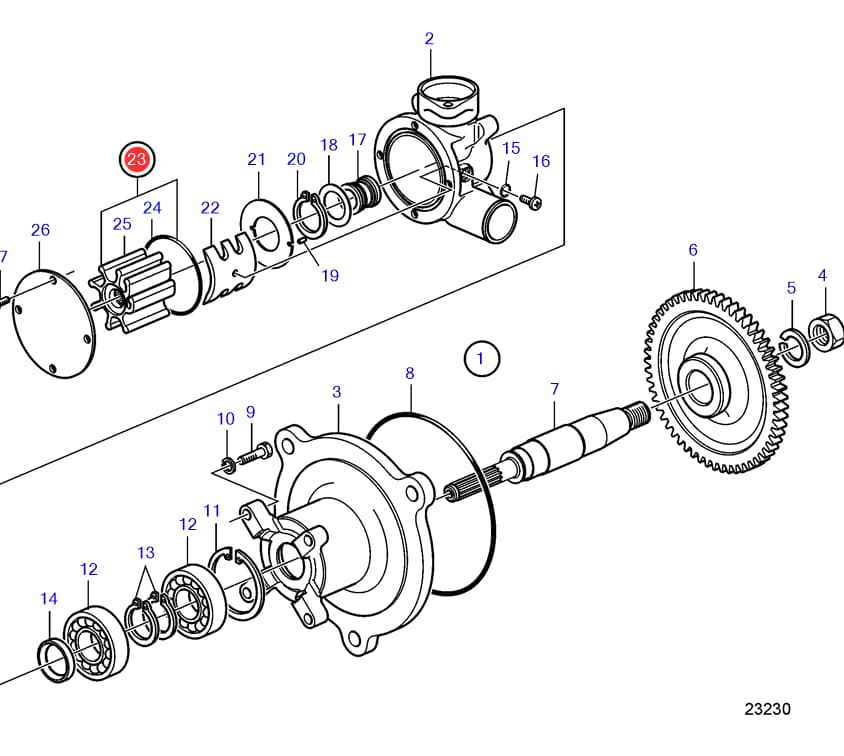 21200961 är ett impellerkit från Volvo Penta för sjövattensystemets kylpump.