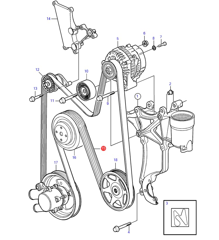 21399021 är en original V-serpentinrem (drivrem) från Volvo Penta. Den ingår i motorns remdrivsystem och överför kraft till komponenter som generator och vattenpump på utvalda V6 och V8 bensinmotorer.