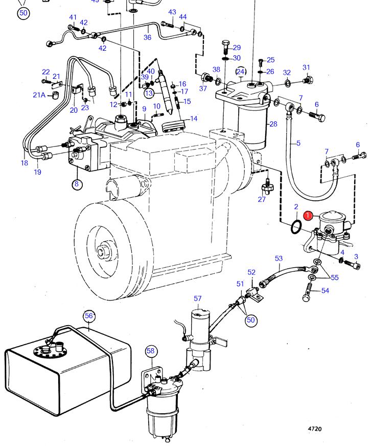 Bränslematarpump (fuel lift/feed pump) för Volvo Penta dieselmotorer. Den mekaniska pumpen matar bränsle med rätt tryck från tanken till insprutningssystemet för stabil och tillförlitlig motordrift.