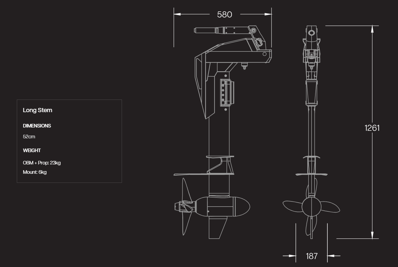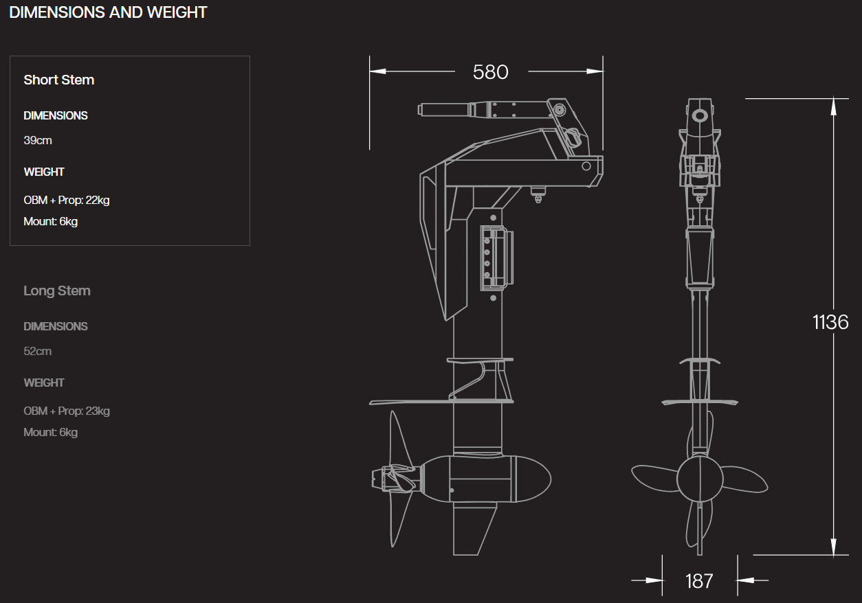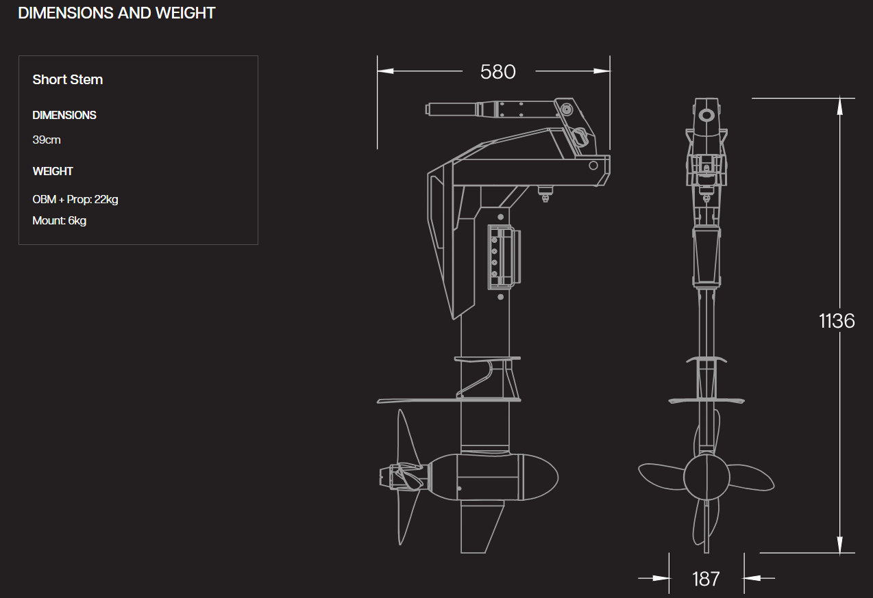 Vikt endast 22 kg (motor + propeller) och 6 kg för monteringssystemet, vilket gör den lätt att hantera och transportera.