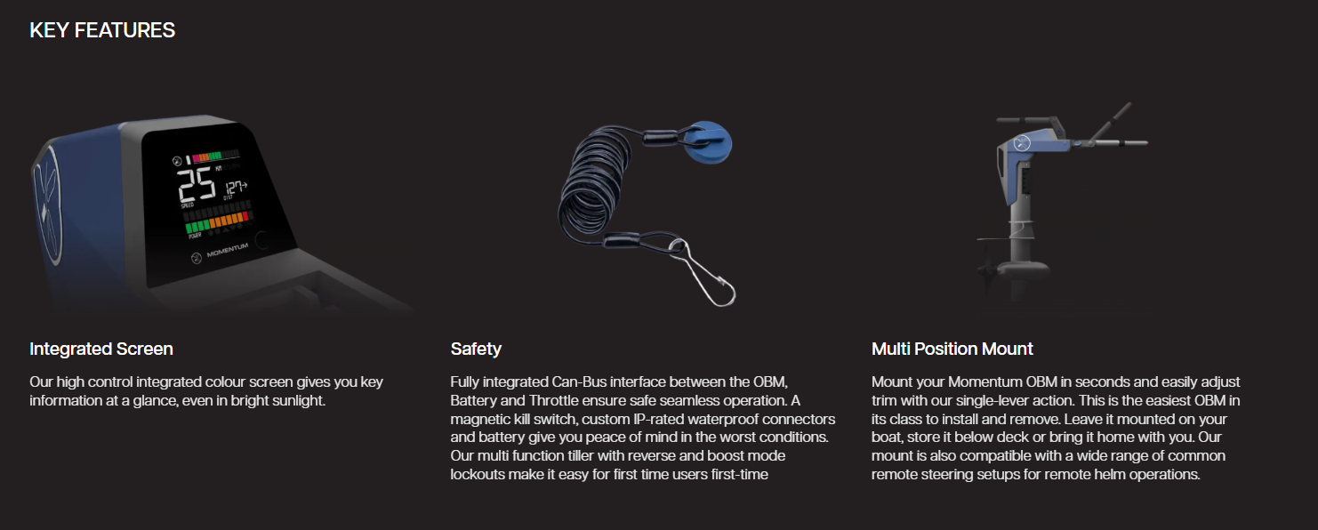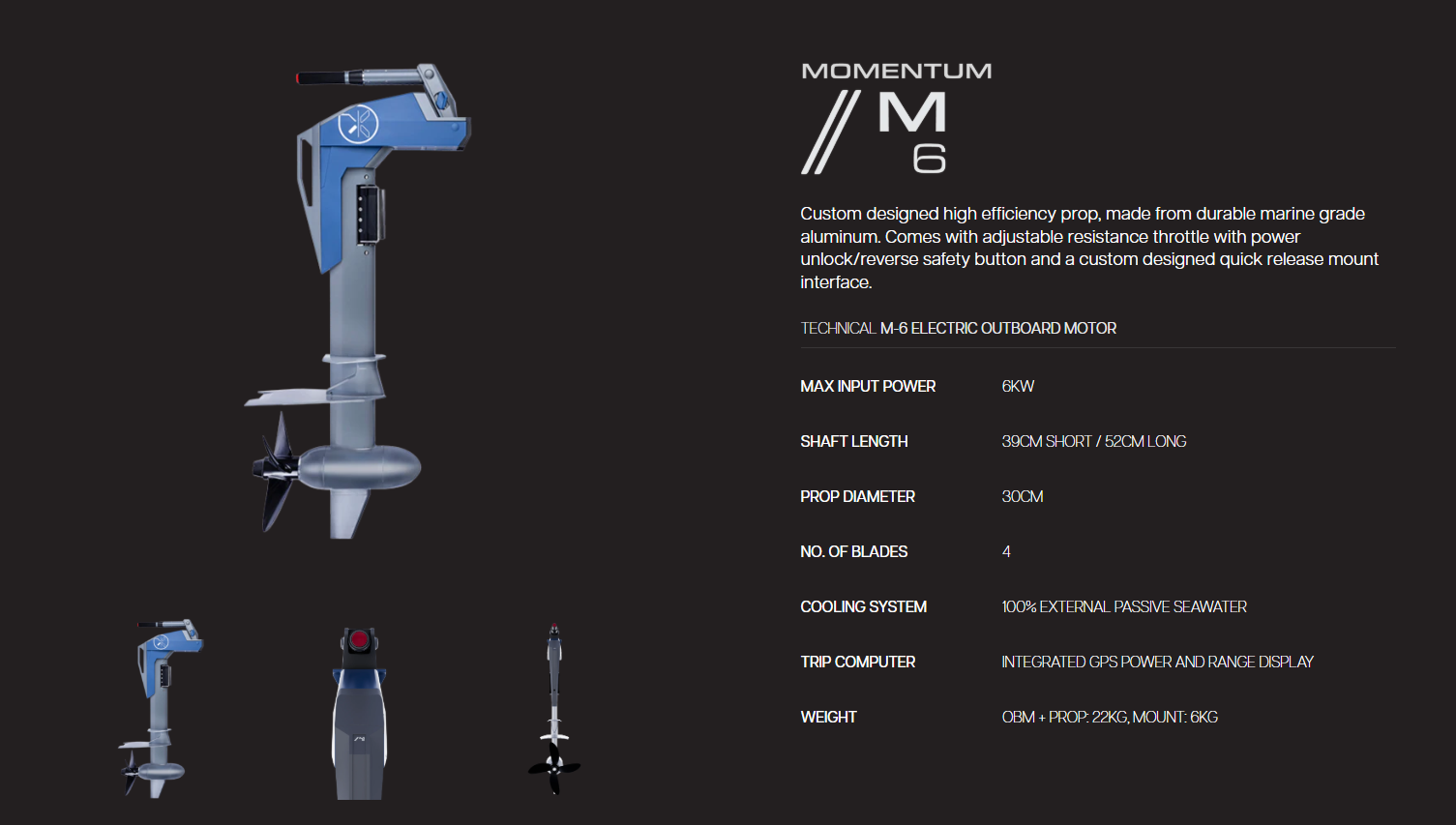 Momentum M6 är en specialdesignad elektrisk utombordsmotor med hög verkningsgrad och konstruerad av slitstarkt marinklassat aluminium. Den är skapad för dig som kräver både prestanda och användarvänlighet, perfekt för allt från fritidsbåtar till professionellt bruk.