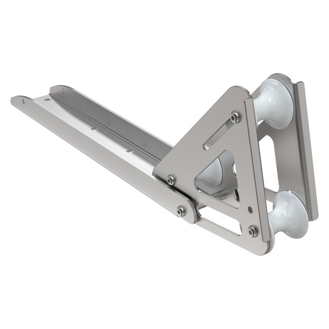 Stabilt och ledad ankarbeslag i polerat rostfritt stål, anpassat för säkra och smidiga ankarhanteringar.
