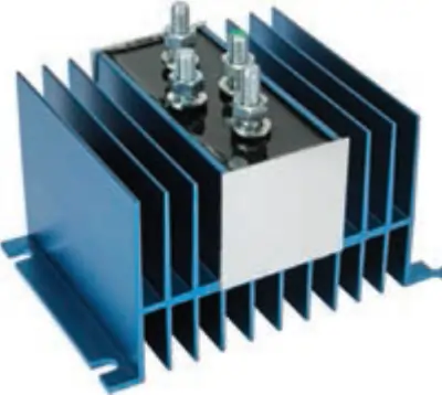 Laddningsfördelare / batterseparator. Förhindrar urladdning av huvudbatteriet om elsystemet har två eller flera batterier. Laddningsfördelaren är utrustad med en kompensationsdiod som gör att laddspänningen kompenseras för spänningsfallet. Art nr 160343 går att koppla till två separata batterikretsar.